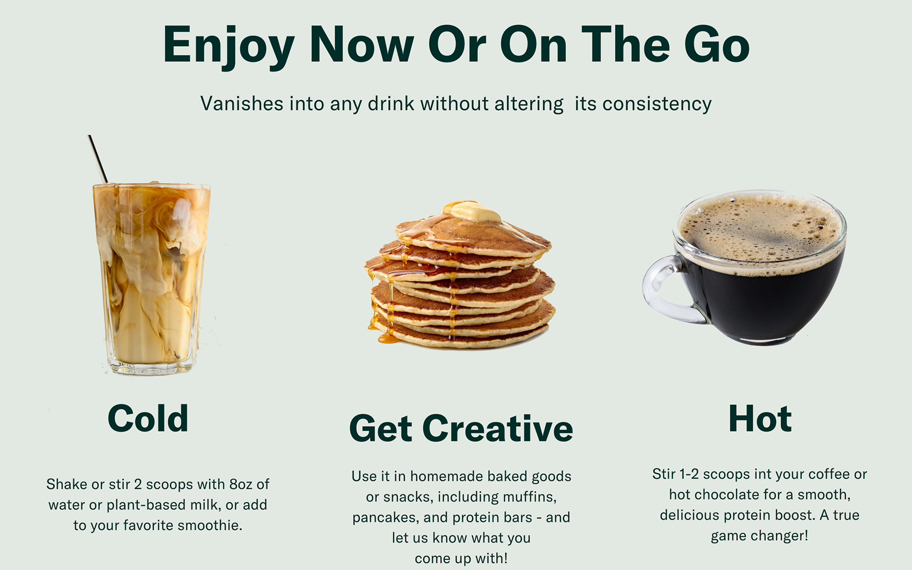 Our highly soluble protein not only dissolves instantly into liquids, but digests quickly as well — helping your body absorb the protein it needs in minutes.