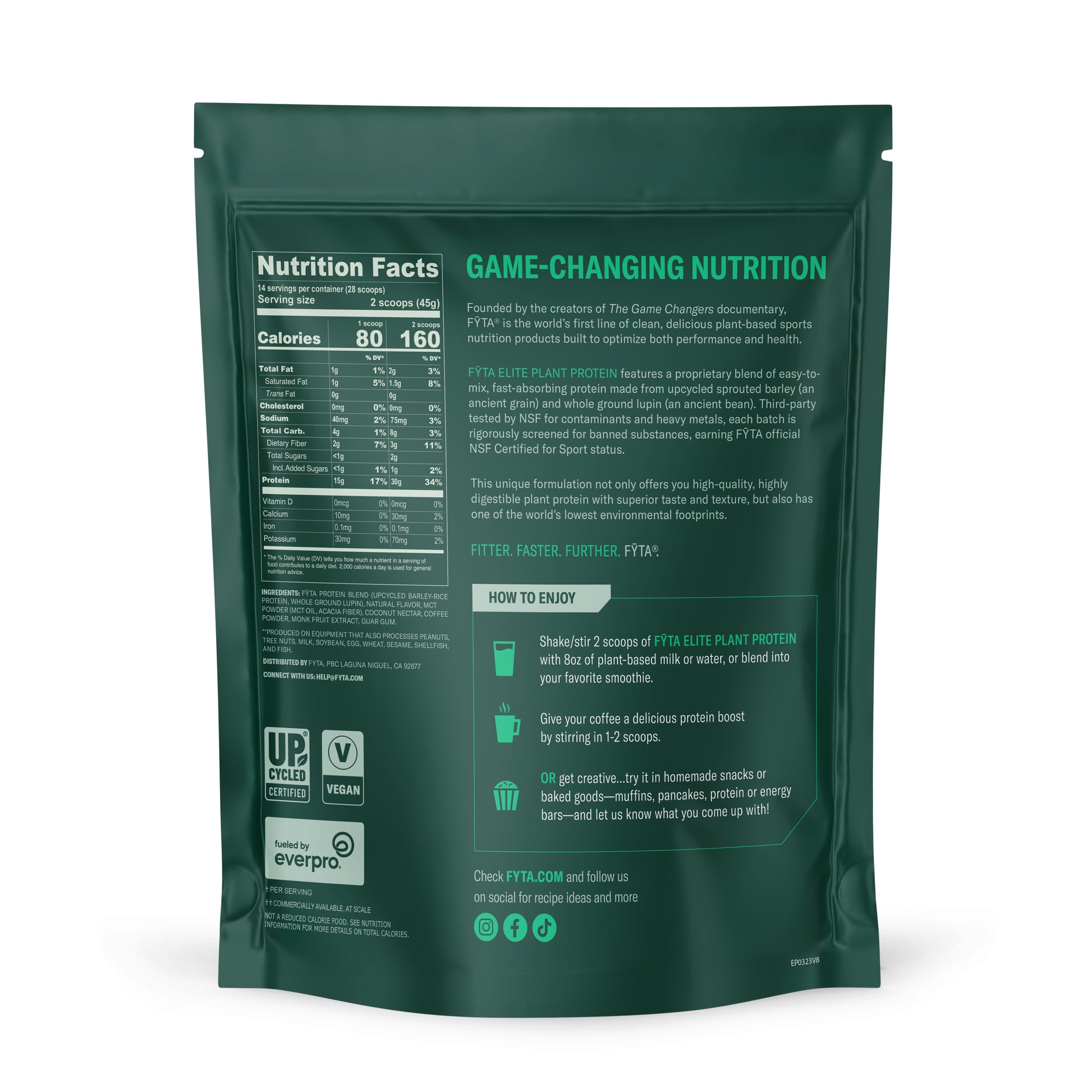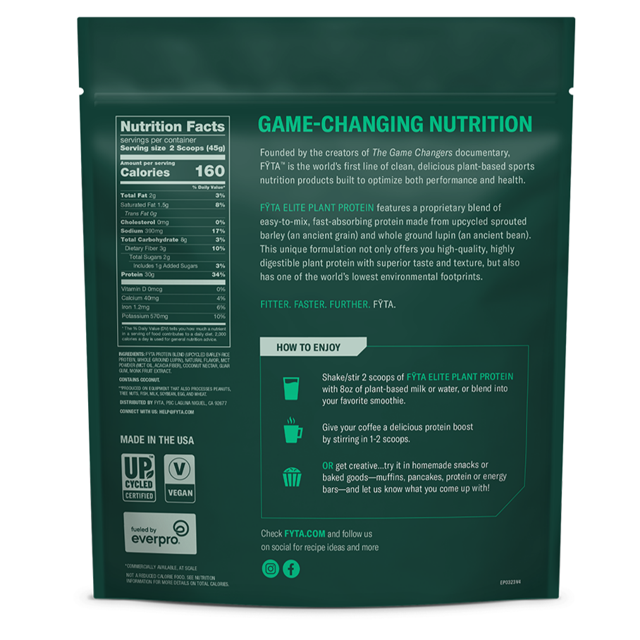 The only Upcycled Certified protein blend on the market, FȲTA™ is made with the world’s most sustainable protein.